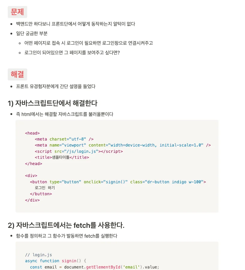 ✍️TIL 로그인 필요 페이지 fetch, success사용법