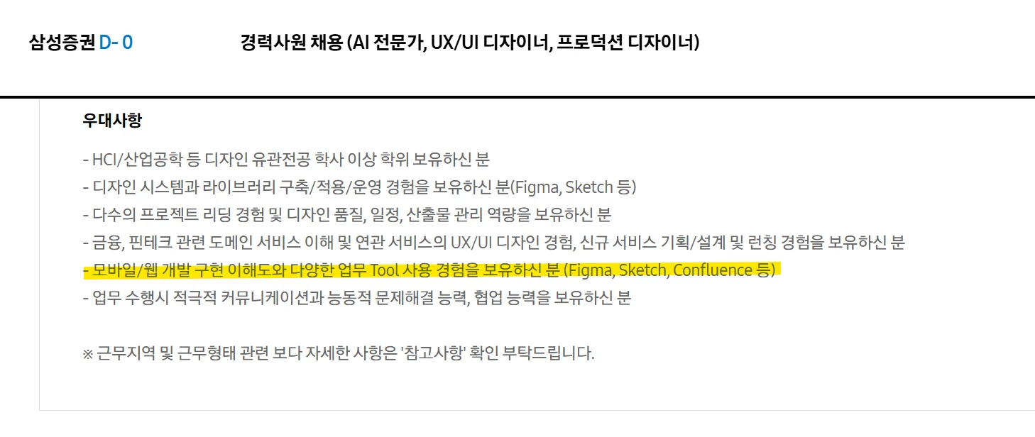 출처. 삼성증권 UX/UI 디자이너 채용 공고(https://www.samsungcareers.com/hr/?no=20265)