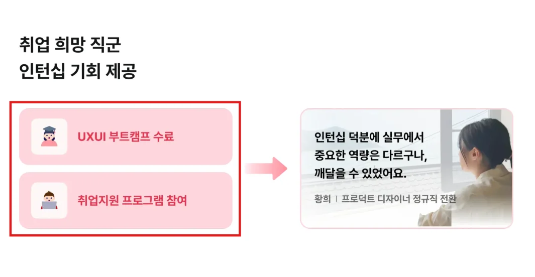 내일배움캠프 UXUI 부트캠프 인턴십 제도(이미지 클릭 시 취업 후기 이동)