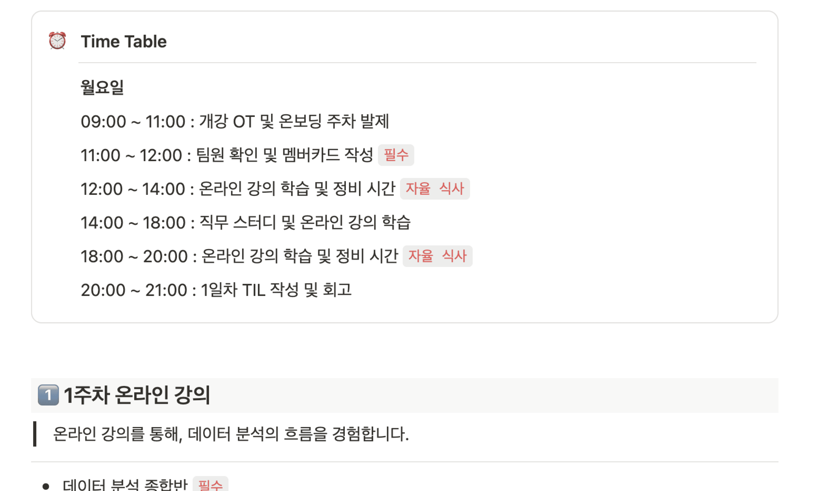 온라인 강의 수강, 실시간 특강, 팀프로젝트 등